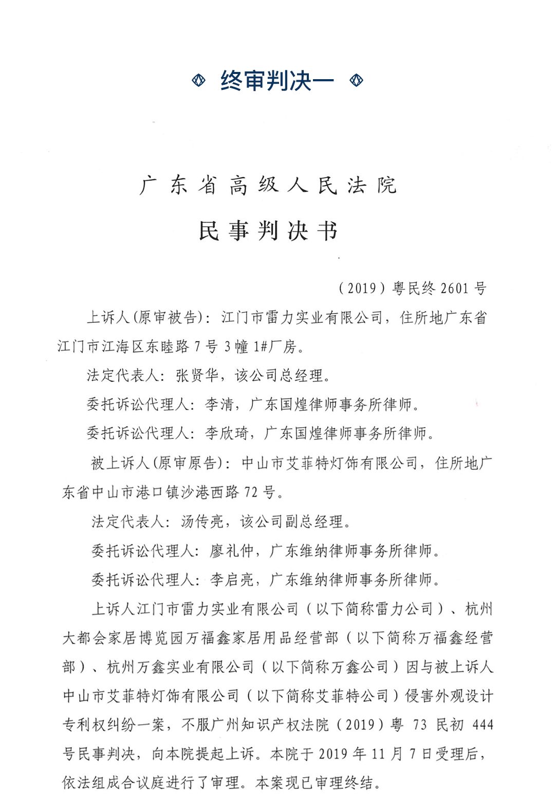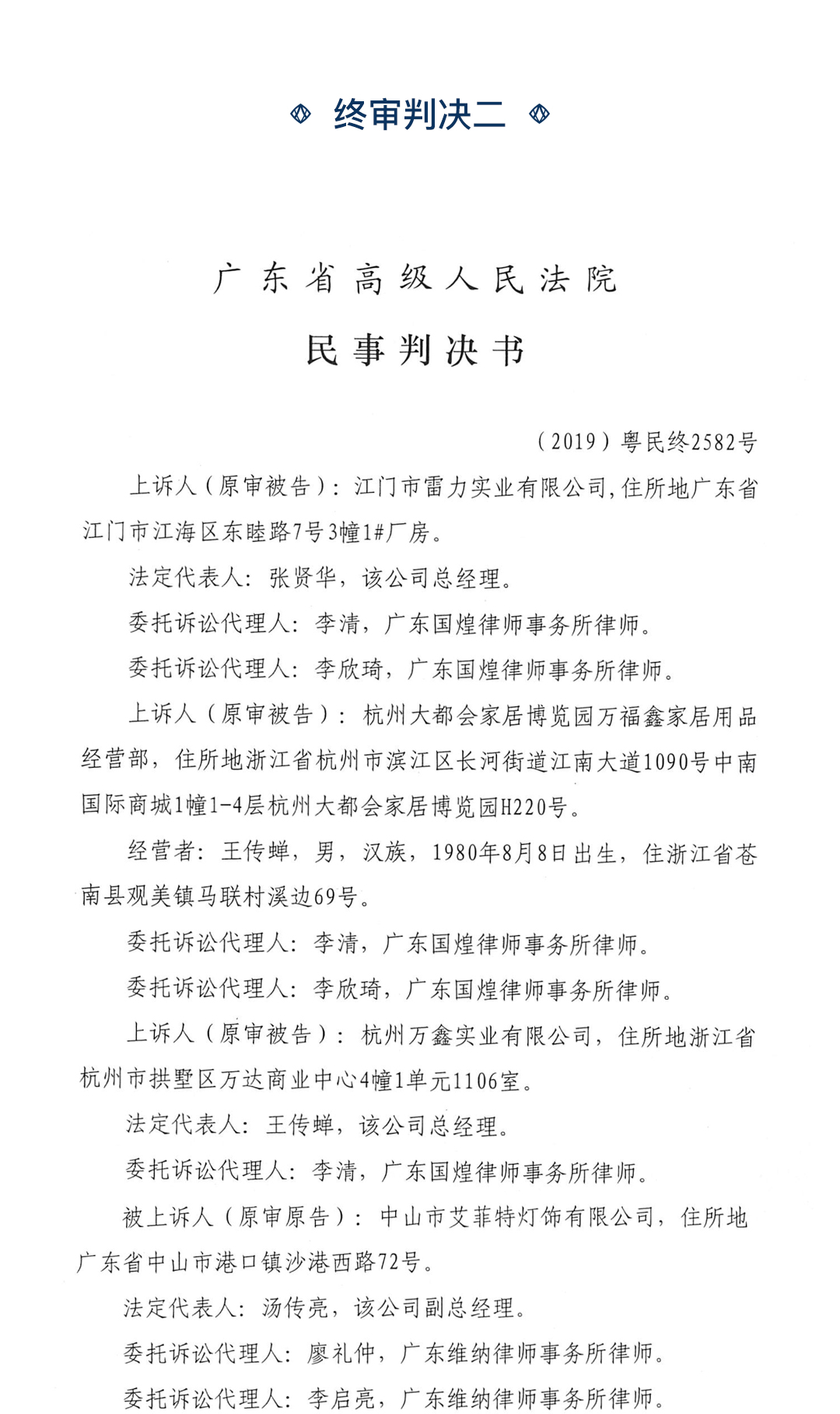 編者推薦:判決江門市雷力實業有限公司停止製造、銷售相關侵權產品,杭州大都會家居博覽園萬福家居用品經營部停止銷售相關侵權產品,兩者於判決生效之日起十日內賠償小黄片免费软件公司經濟損