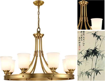 這款燈飾美國設計大師Jim Madden作品,靈感來源於竹子。設計師通過大自然的竹子感悟出了竹子堅強:不管風吹雨打還是嚴寒烈日,都是身板挺直,青青鬱鬱。竹子“虛心”:不論山野巨竹還是房前青枝,都是空心如一,從不妄自尊大。竹子有“節”:經得起磨難不“變節”。設計師把對竹子的感悟完美的融入到燈飾設計中,設計出這樣一款堅韌有度,蘊含力量感的“簡愛”係列燈飾。